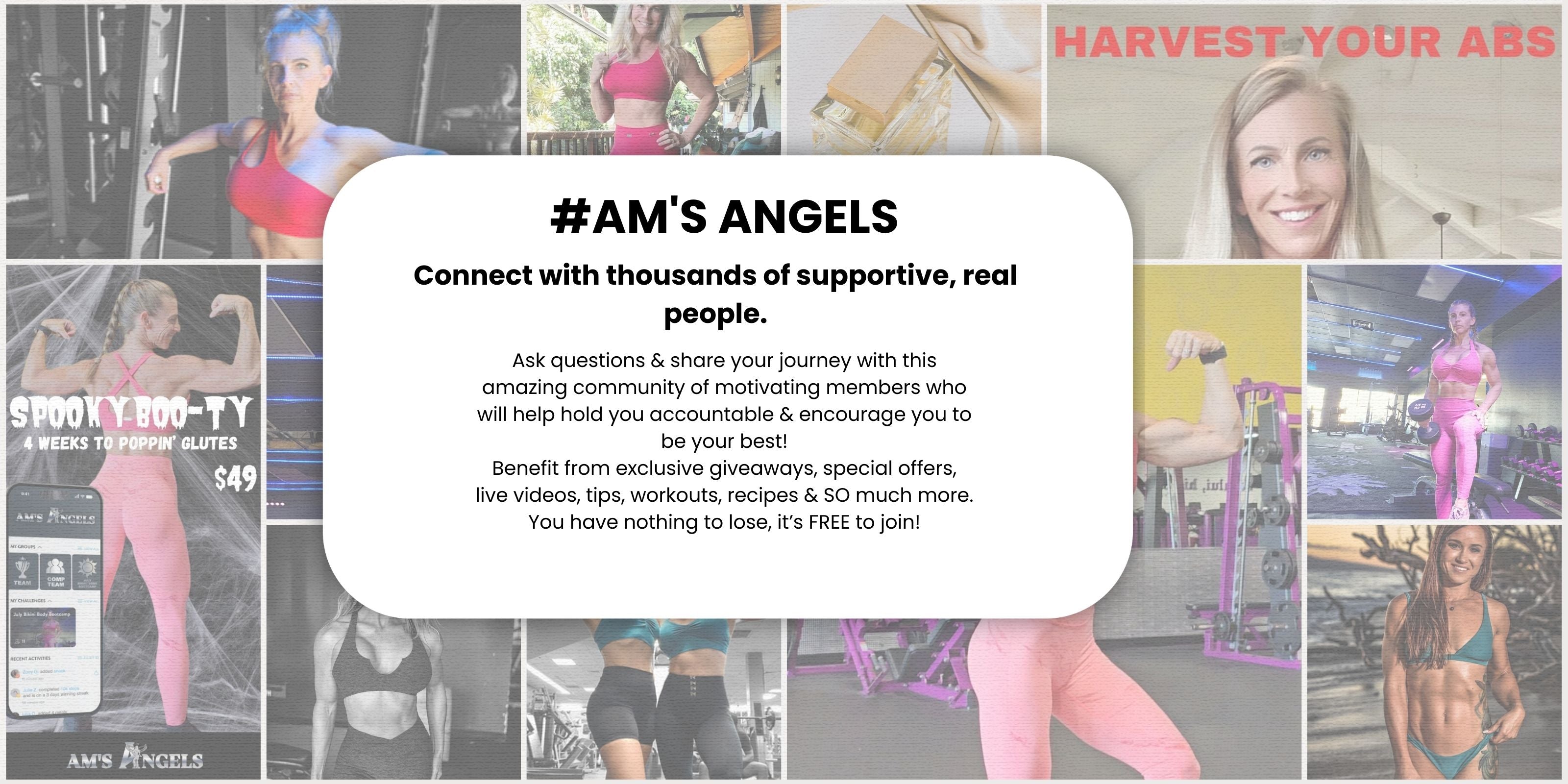 Discounts, giveaways, live videos, and challenges just for am's angels fit app members!